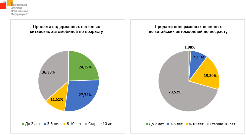 Автомобили возрастом до 5 лет занимают чуть больше половины рынка подержанных китайских машин. Среди некитайских автомобилей только чуть больше десяти процентов приходится на машины возрастом до 5 лет. С одной стороны, такая структура рынка объясняется тем, что массированные продажи китайских автомобилей начались гораздо позднее. С другой стороны, такая ситуация может свидетельствовать о том, что значительная часть владельцев новых китайских машин пока не предполагает эксплуатировать их так же долго, как европейские, японские и другие привычные автомобили.