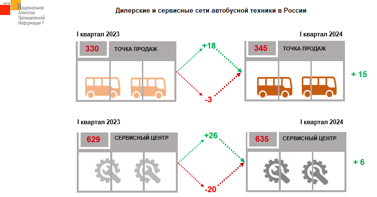 Количество авторизованных точек продаж выросло на 15 ед. и составило 345 ед. Продажей автобусов китайских брендов занимается 22% дилеров.