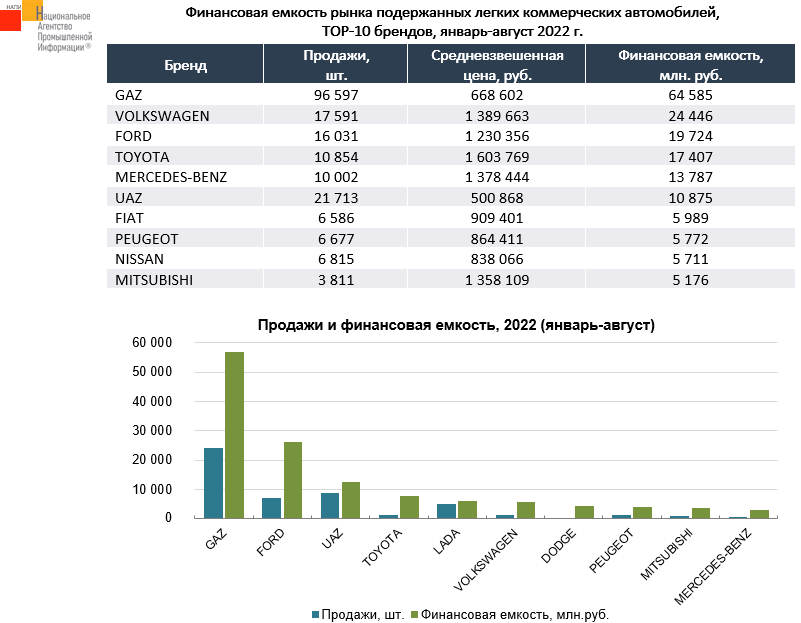 По данным маркетингового агентства НАПИ (Национальное Агентство Промышленной Информации) на рынке новых легких коммерческих автомобилей по итогам восьми месяцев текущего года FORD лидирует по финансовой емкости среди иностранных брендов с результатом в 26,1 млрд. руб.