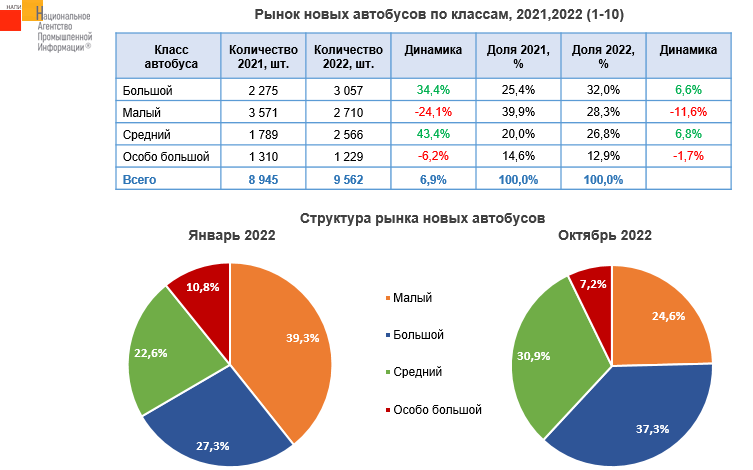По данным НАПИ по итогам десяти месяцев текущего года изменилась структура рынка новых автобусов.