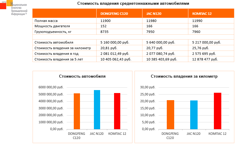 Маркетинговое агентство НАПИ проанализировало стоимость владения грузовыми автомобильными шасси в г. Москва. Условия расчёта: срок владения 5 лет, ежегодный пробег 100 000 км, покупка за собственные средства.