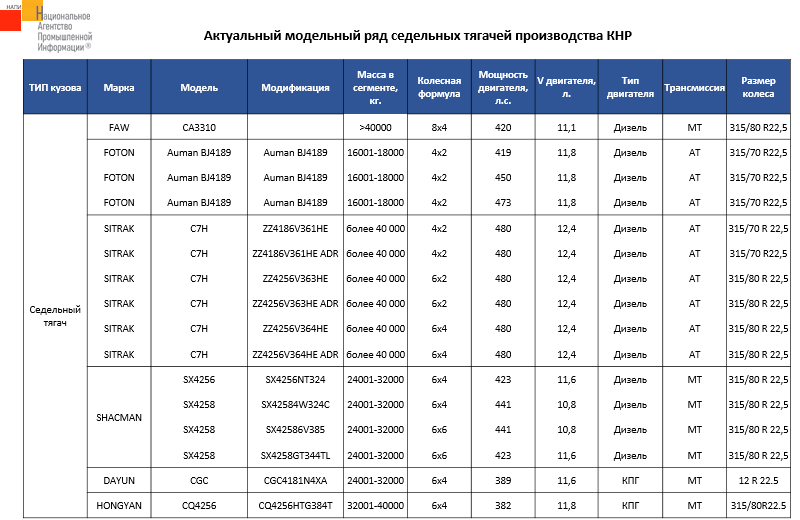 Маркетинговое агентство НАПИ провело анализ модельного ряда седельных тягачей, поступивших на российский рынок в 2022 г.
