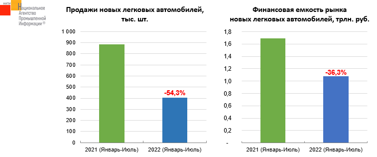 По данным маркетингового агентства НАПИ (Национальное Агентство Промышленной Информации) за 7 месяцев текущего года на покупку новых легковых автомобилей было потрачено почти 1,1 трлн. руб., в прошлом году - 1,7 трлн. руб.