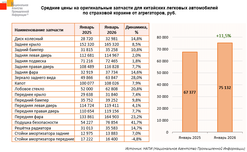 Маркетинговое агентство НАПИ проанализировало цены на оригинальные запчасти по страховой корзине для китайских легковых автомобилей от агрегаторов.