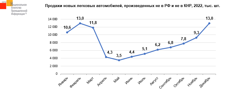 Кроме того, мы видим импорт автомобилей европейских, американских, японских брендов, произведенных в Китае, а также рост параллельного импорта автомобилей, произведенных в Германии, Японии и т.д. Так в декабре прошлого года было продано 13 тыс. машин, произведенных не в России и не в Китае.