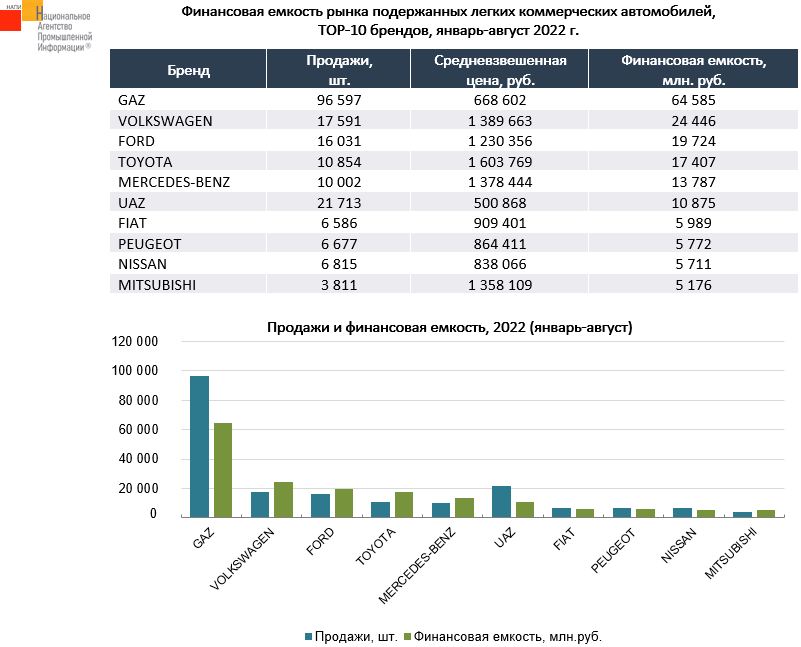 По данным маркетингового агентства НАПИ (Национальное Агентство Промышленной Информации) на рынке подержанных легких коммерческих автомобилей по итогам восьми месяцев текущего года VOLKSWAGEN лидирует по финансовой емкости среди иностранных брендов с результатом в 24,5 млрд. руб.