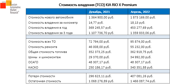 Агентство Russian Automotive Market Research проанализировало изменение стоимости владения новыми легковыми автомобилями с декабря 2021 года по апрель 2022 года.