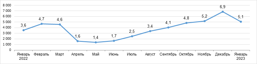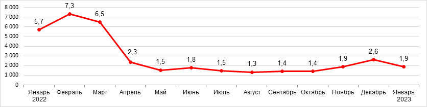 произведенных не в РФ, январь 2023 г.