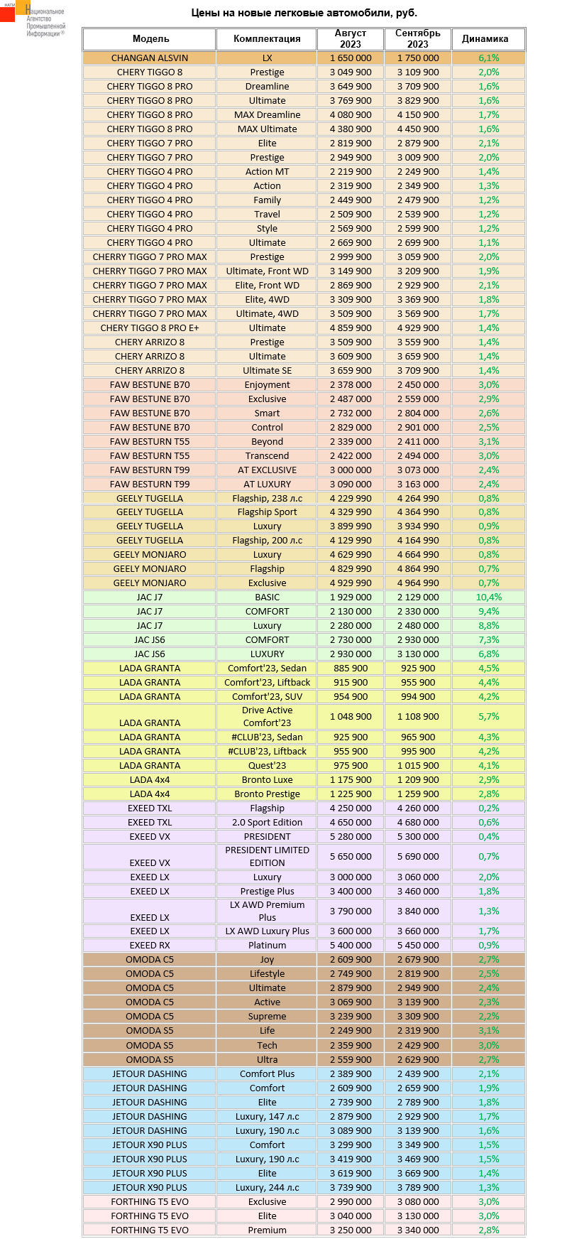 02.10.2023 / В сентябре подорожало меньше автомобилей, чем в августе