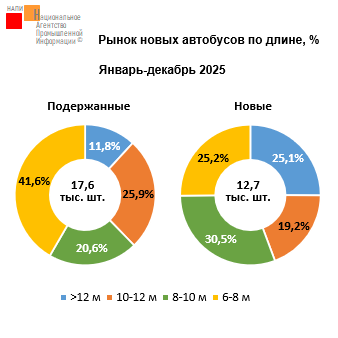 По данным НАПИ, за янв.-дек. 2025 г. было продано 30,3 тыс. ед. новых и подержанных автобусов, что на 22,4% меньше, чем годом ранее, когда было реализовано 39 тыс. автобусов. Из них 12,7 тыс. ед. были новыми (-34,1% по сравнению с 2024 г.), а 17,6 тыс. ед. – подержанными (-10,9%). За год значительно упали продажи новых автобусов длиной 10-12 м (-60,4%), 6-8 м (-35%), 8-10 м (-22,6%)…