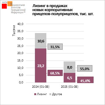 По данным НАПИ, за январь-август 2025 г. корпоративными клиентами было приобретено 14,5 тыс. новых и 18 тыс. подержанных прицепов-полуприцепов. В прошлом году было реализовано на 57,2% больше новых (33,8 тыс.) и на 0,1% меньше подержанных прицепов-полуприцепов (18 тыс.)…
