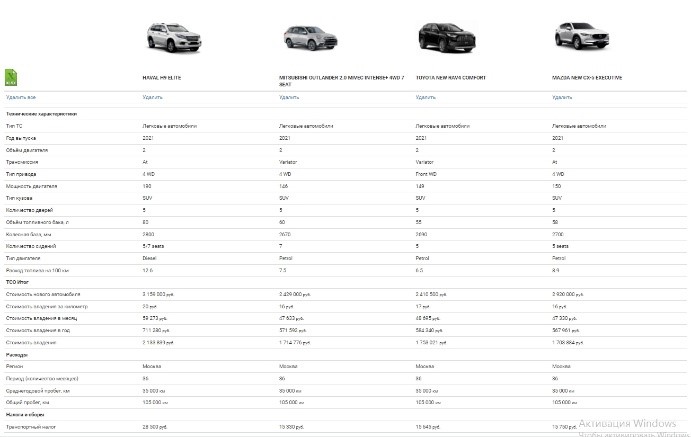 - Сравнить стоимость владения различными моделями автомобилей