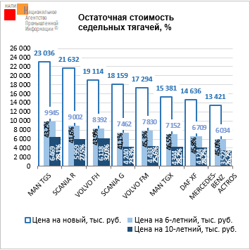 Маркетинговое агентство НАПИ обновило отчет «Остаточная стоимость седельных тягачей» по итогам 3 квартала 2025 года. Среди представленных на графике 6-летних и 10-летних тягачей дороже всего в 3 квартале можно было продать MAN TGS, средняя цена которого составляла 9,9 млн рублей и 6,5 млн рублей соответственно…
