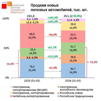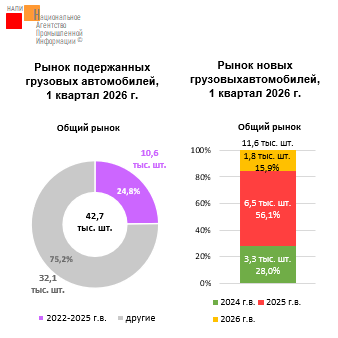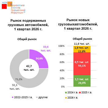 По данным маркетингового агентства НАПИ, за январь-март 2026 года было продано 5,3 тыс. ед. новых и подержанных автобусов, что на 21,7% меньше, чем годом ранее, когда было реализовано 6,8 тыс. автобусов. Из них 1,9 тыс. ед. были новыми (-4,3% по сравнению с 2025 годом), а 3,4 тыс. ед. – подержанными (-28,8%)