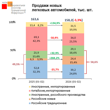 По данным маркетингового агентства НАПИ, за январь-февраль 2026 года было продано 2,18 тыс. ед. новых полуприцепов, что на 49,3% меньше, чем годом ранее. Продажи новых прицепов составили 0,34 тыс. ед., за год сократившись на 64,6%.