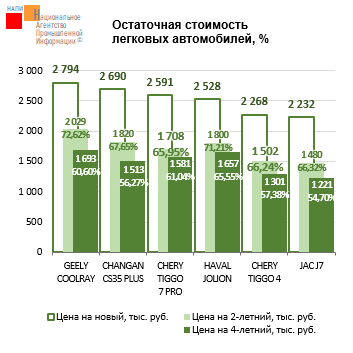 За год продажи новых автомобилей сократились на 29,7%. Продажи ТОП-5 марок среди новых корпоративных автомобилей снизились на 32,8%, их доля сократилась до 57,8%. Ниже рынка упали продажи CHERY (-43,0%), HAVAL (-43,4%), GEELY (-57,7%). Положительную динамику показала марка BELGEE (+41,8%).
