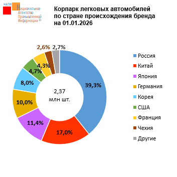 По данным маркетингового агентства НАПИ, в корпоративном парке легковых автомобилей на 01.01.2026 года насчитывается 2,4 млн единиц техники.