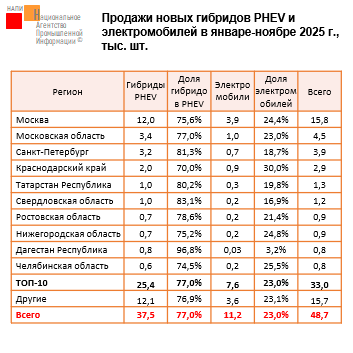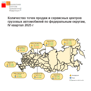 По данным маркетингового агентства НАПИ, за январь-ноябрь 2025 года было продано 7,4 млн новых и подержанных легковых и коммерческих автомобилей, в том числе 265,5 тыс. ед. – в финансовый и операционный лизинг. За год доля автомобилей, приобретенных в лизинг, сократилась с 5,3% до 3,6% (-1,7 п.п.).