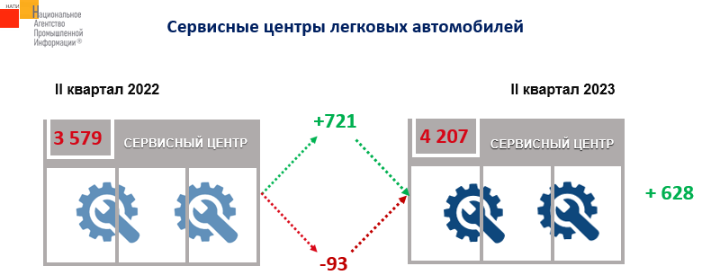 Маркетинговое агентство НАПИ (Национальное Агентство Промышленной Информации) обновило отчет по дилерским и сервисным центрам легковых автомобилей. По итогам 2 квартала 2023 г. количество сервисных центров выросло на 628 шт. по сравнению со вторым кварталом прошлого года. Основной рост произошел за счет расширения сервисной сети китайских брендов, количество «китайских» СТО увеличилось на 575 шт.