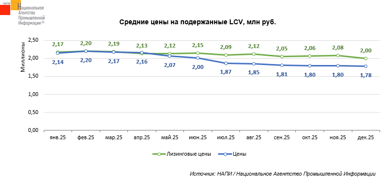 В декабре 2025 года по сравнению с январем того же года средние цены на подержанные LCV сократились на 17%, а лизинговые цены снизились на 8,1%.