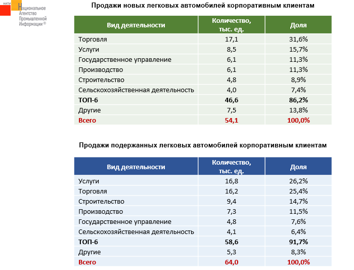 По данным маркетингового агентства НАПИ, за десять месяцев 2023 года компании, не занятые в таких видах деятельности, как аренда, лизинг, перевозки, приобрели 54,1 тыс. новых легковых автомобилей и 64 тыс. подержанных легковых автомобилей. На первом месте по приобретению новых автомобилей – торговые компании – 17,1 тыс. Больше всего подержанных автомобилей приобрели организации, занятые в сфере услуг – 16,8 тыс.