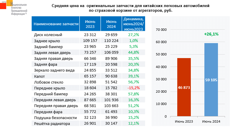За год с июня 2023 по июнь 2024 средняя цена на оригинальные запчасти выросла на 26,1%.