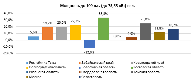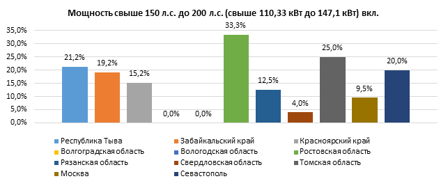 Наибольшее повышение ставок на автомобили всех рассматриваемых ниже мощностей зафиксировано в Ростовской и Томской областях. Снизились ставки лишь в Вологодской области на автомобили с мощностью двигателя до 100 л.с. (до 73,55 кВт) включительно и с мощностью двигателя свыше 100 л.с. до 150 л.с. (свыше 73,55 кВт до 110,33 кВт) включительно.