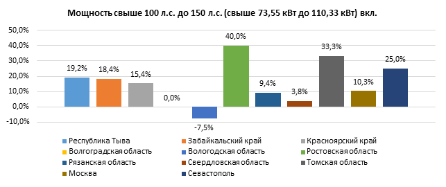 Ставки транспортного налога на автомобили с мощностью двигателя свыше 100 л.с. до 150 л.с. (свыше 73,55 кВт до 110,33 кВт) включительно изменились в 10 регионах: