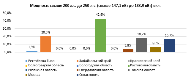 Ставки транспортного налога на автомобили с мощностью двигателя свыше 200 л.с. до 250 л.с. (свыше 147,1 кВт до 183,9 кВт) включительно изменились в 7 регионах: