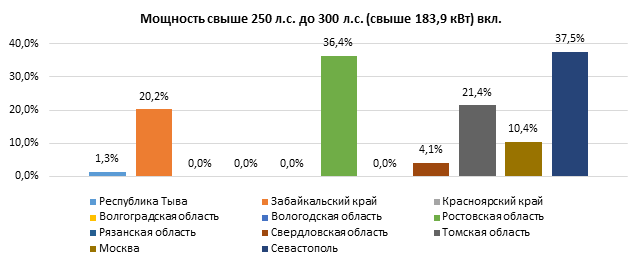 Ставки транспортного налога на автомобили с мощностью двигателя свыше 250 л.с. до 300 л.с. (свыше 183,9 кВт) включительно изменились в 7 регионах: