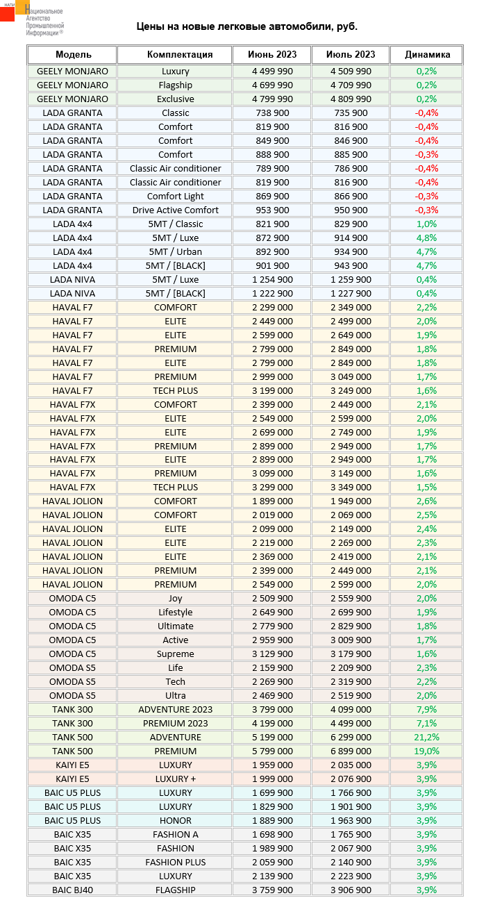 Маркетинговое агентство НАПИ проанализировало рекомендованные розничные цены (РРЦ) на новые легковые автомобили в июле 2023 г.