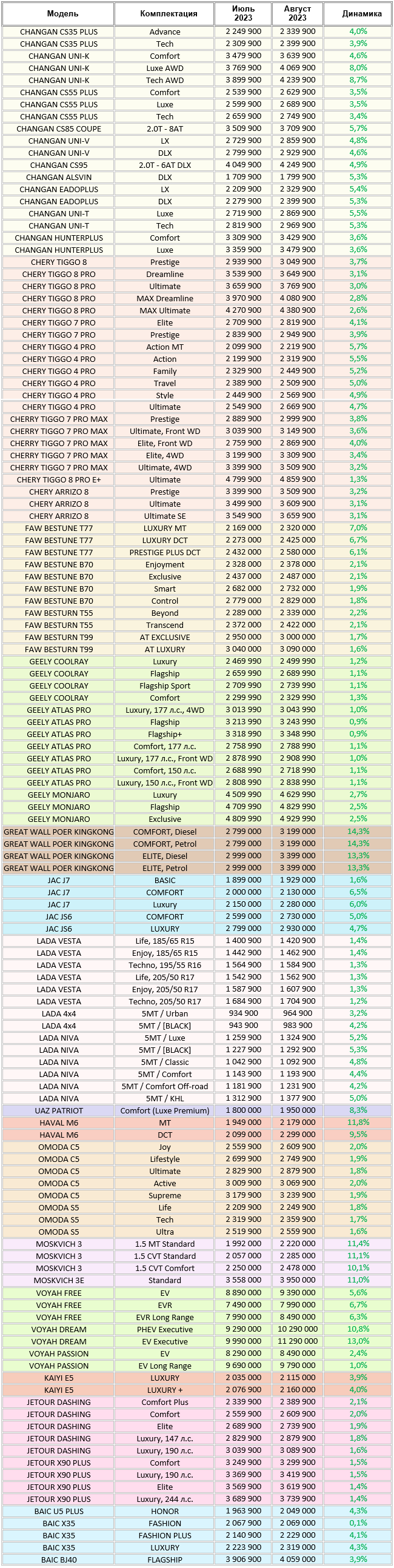 Маркетинговое агентство НАПИ проанализировало рекомендованные розничные цены (РРЦ) на новые легковые автомобили в августе 2023 г. С 1 августа 2023 г. резко выросли коэффициенты по утилизационному сбору, что привело к дальнейшему росту цен на автомобили. В августе по сравнению с июлем выросли цены на 127 комплектаций, автомобили подорожали на 0,1-14,3%. В июле по сравнению с июнем подорожали «всего» 52 комплектации.