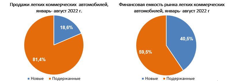 По данным маркетингового агентства НАПИ (Национальное Агентство Промышленной Информации) на покупку новых и подержанных легких коммерческих автомобилей за восемь месяцев 2022 г. было потрачено 354,7 млрд. руб. Интересно отметить, что чуть больше 40% от этой суммы пришлось на новые легкие коммерческие автомобили, тогда как доля новых автомобилей в структуре продаж «в штуках» составила всего 18,6%.