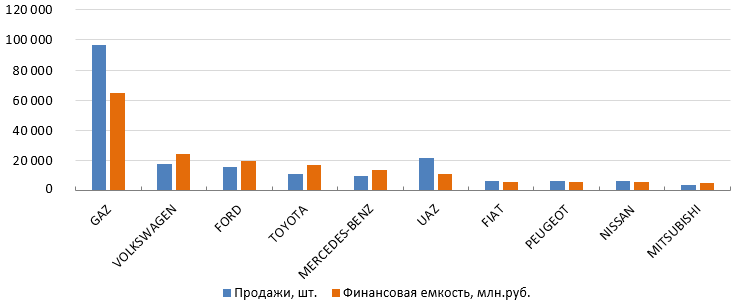 По финансовым показателям на рынке новой и подержанной техники лидирует бренд GAZ за счет больших объемов продаж.
