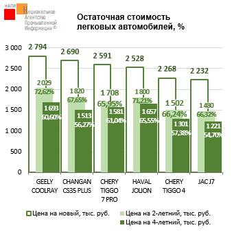 Маркетинговое агентство НАПИ обновило отчет «Остаточная стоимость легковых автомобилей» по итогам 4 квартала 2025 года. Среди представленных на графике двухлетних и четырехлетних автомобилей дороже всего в прошлом квартале можно было продать GEELY COOLRAY, средняя цена которого составляла 2,0 млн рублей и 1,7 млн рублей соответственно…