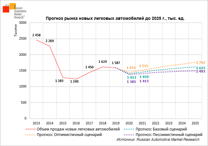 Агентство Russian Automotive Market Research обновило «Прогноз рынка легковых автомобилей на 2020-2025 гг.».