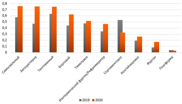 В январе-феврале 2020 г. самыми востребованными на российском рынке стали самосвальные прицепы.